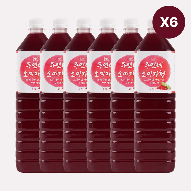프리미엄 수제 생오미자청 1.5 L(6병) 원액(주연네오미자농원)